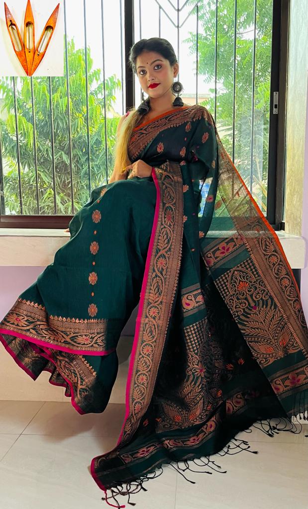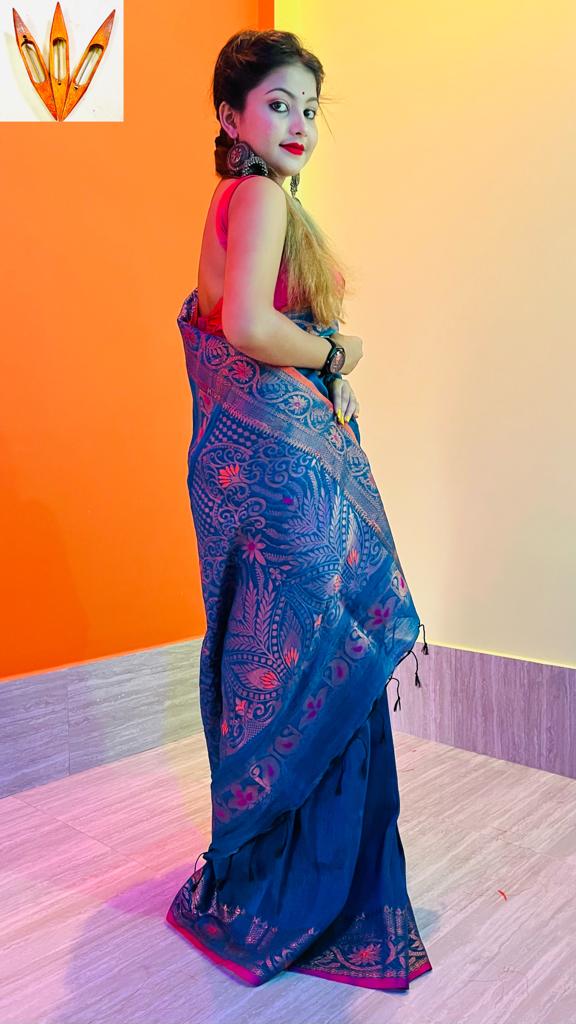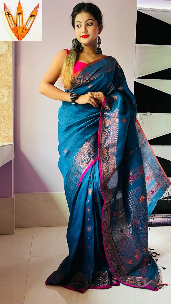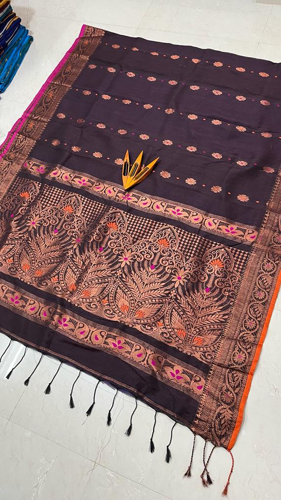 EXCLUSIVE COTTON LINEN ARGANIK BANARASI SAREE(HAND WEAVED)