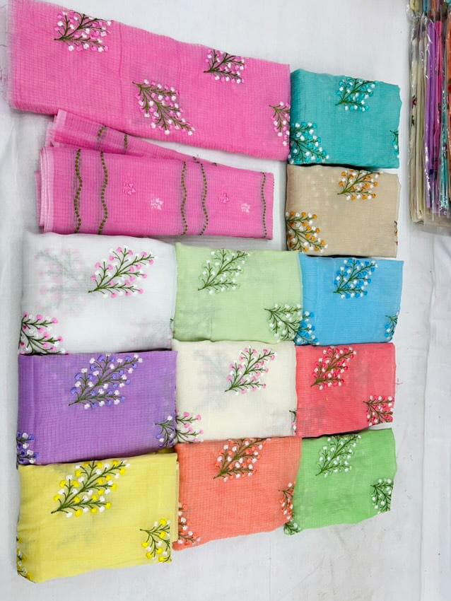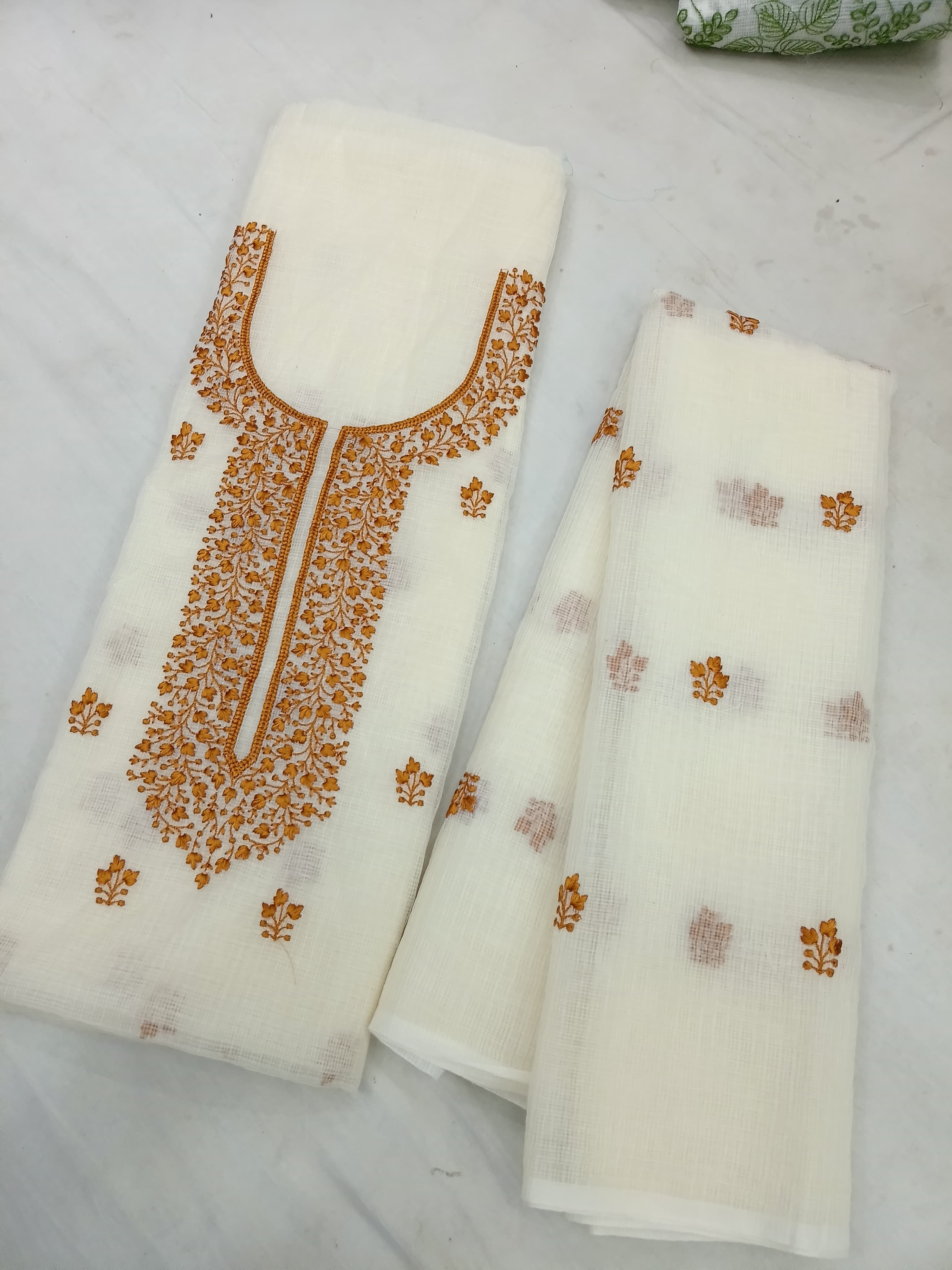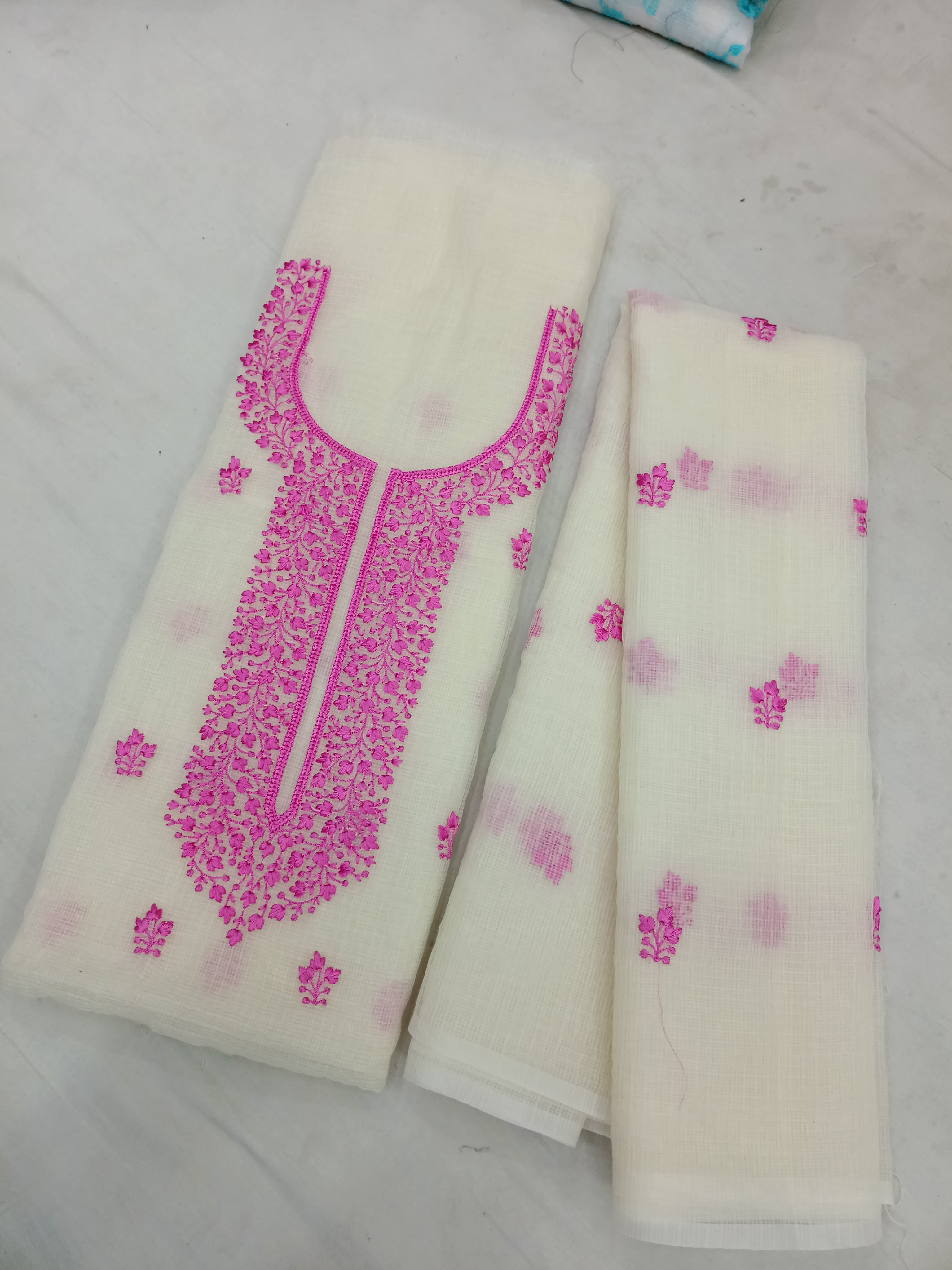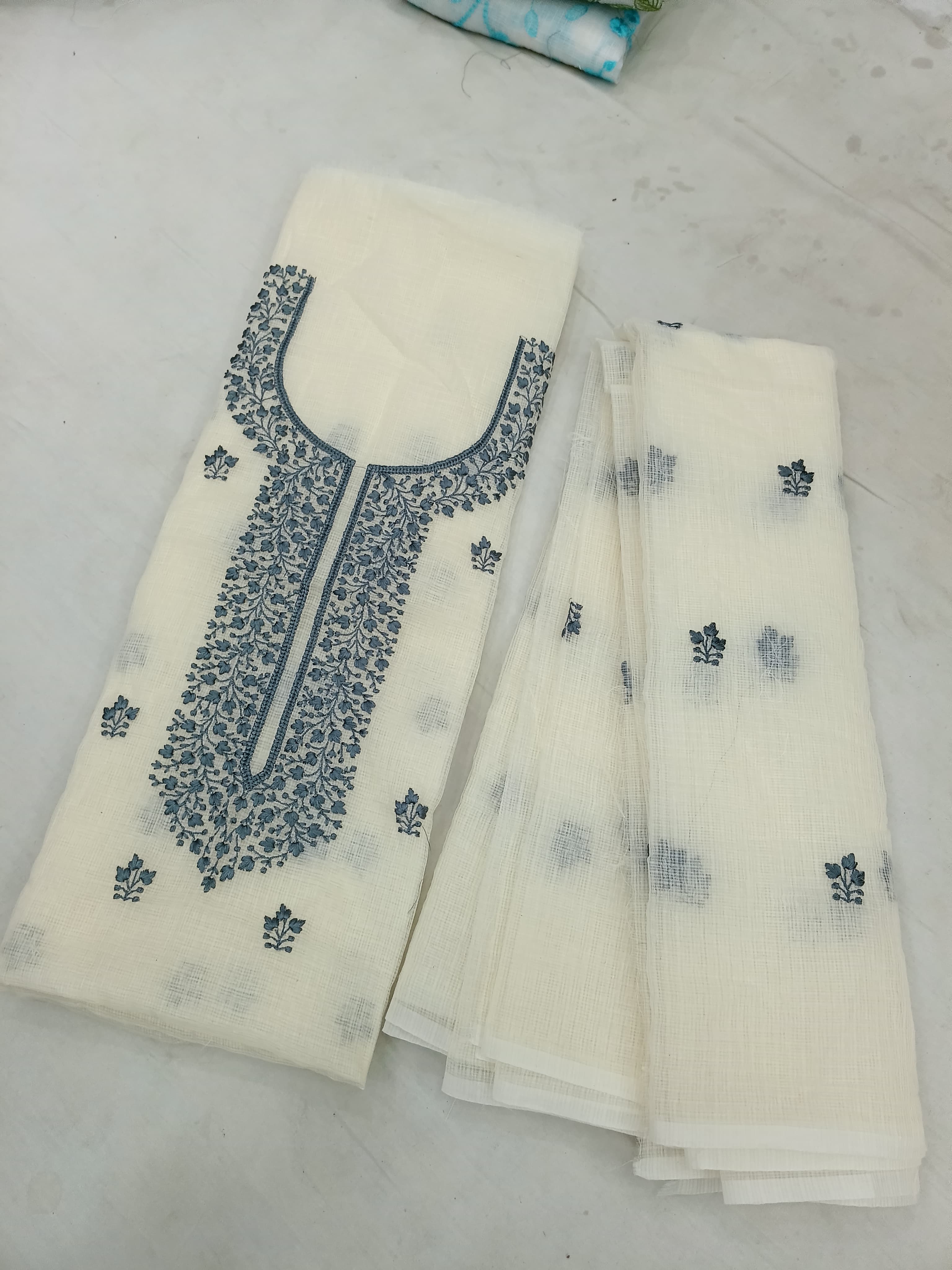 Kota Doria Dupatta and with Kurta set - Jaal work with embroidered pattern