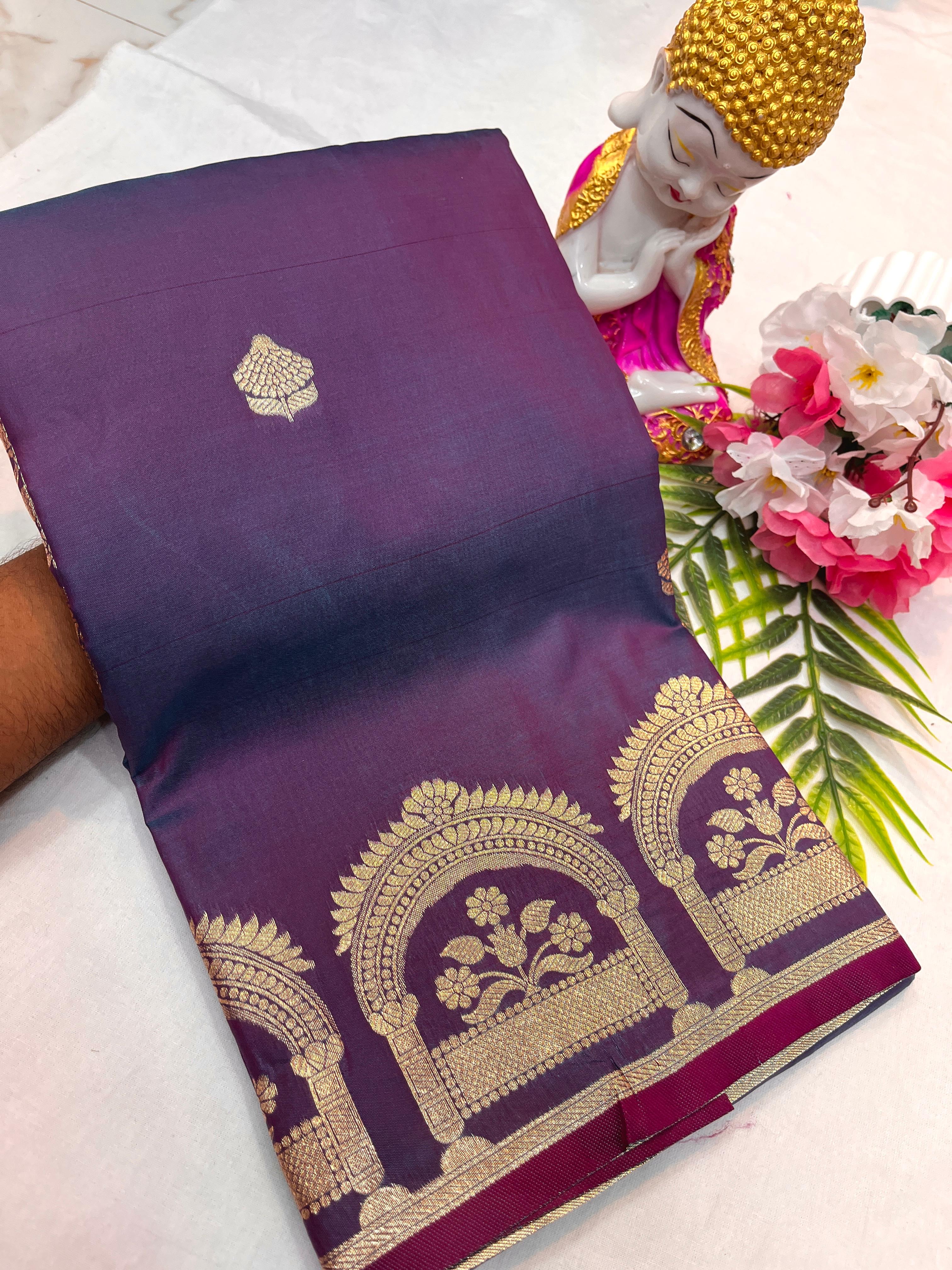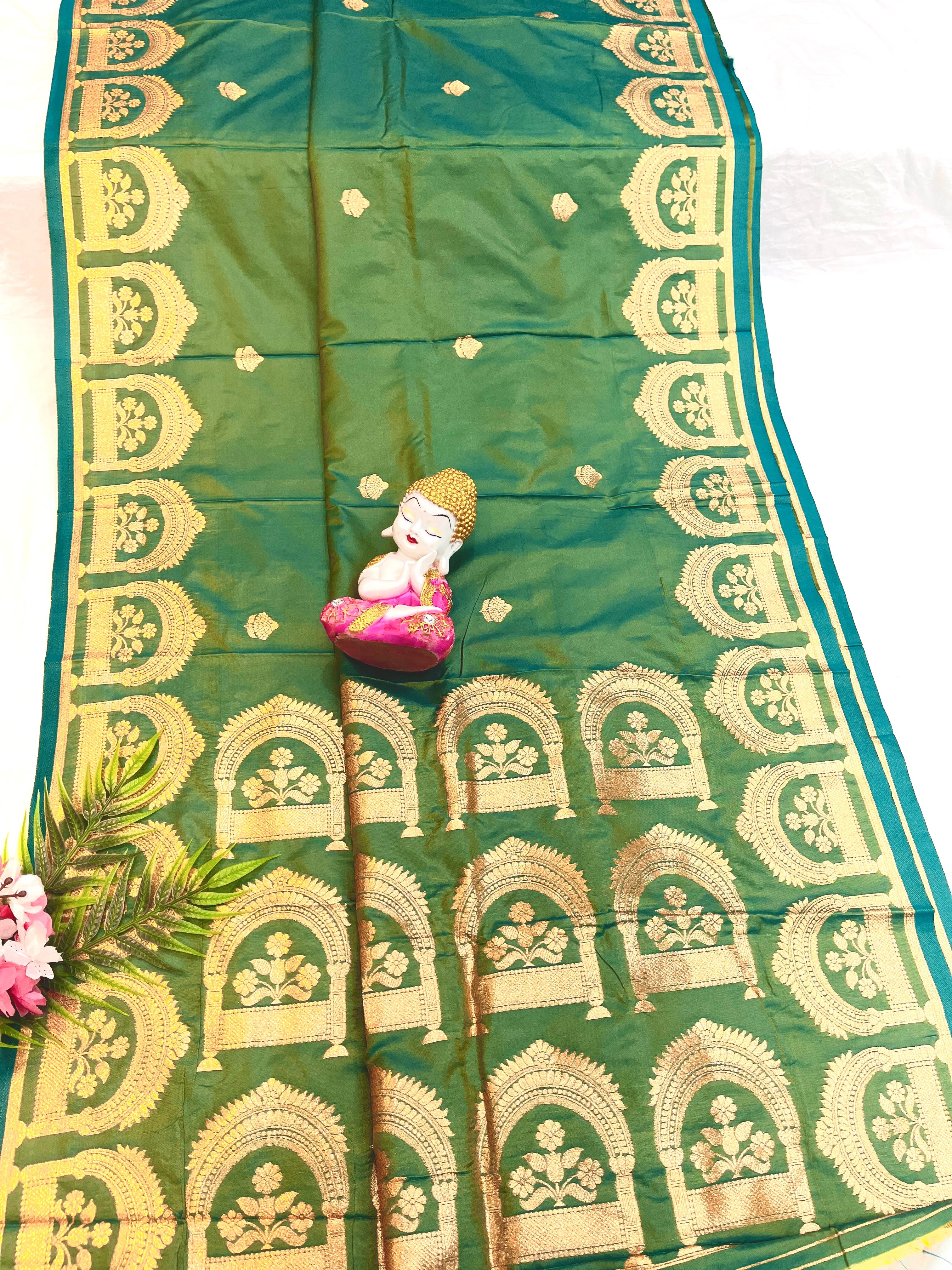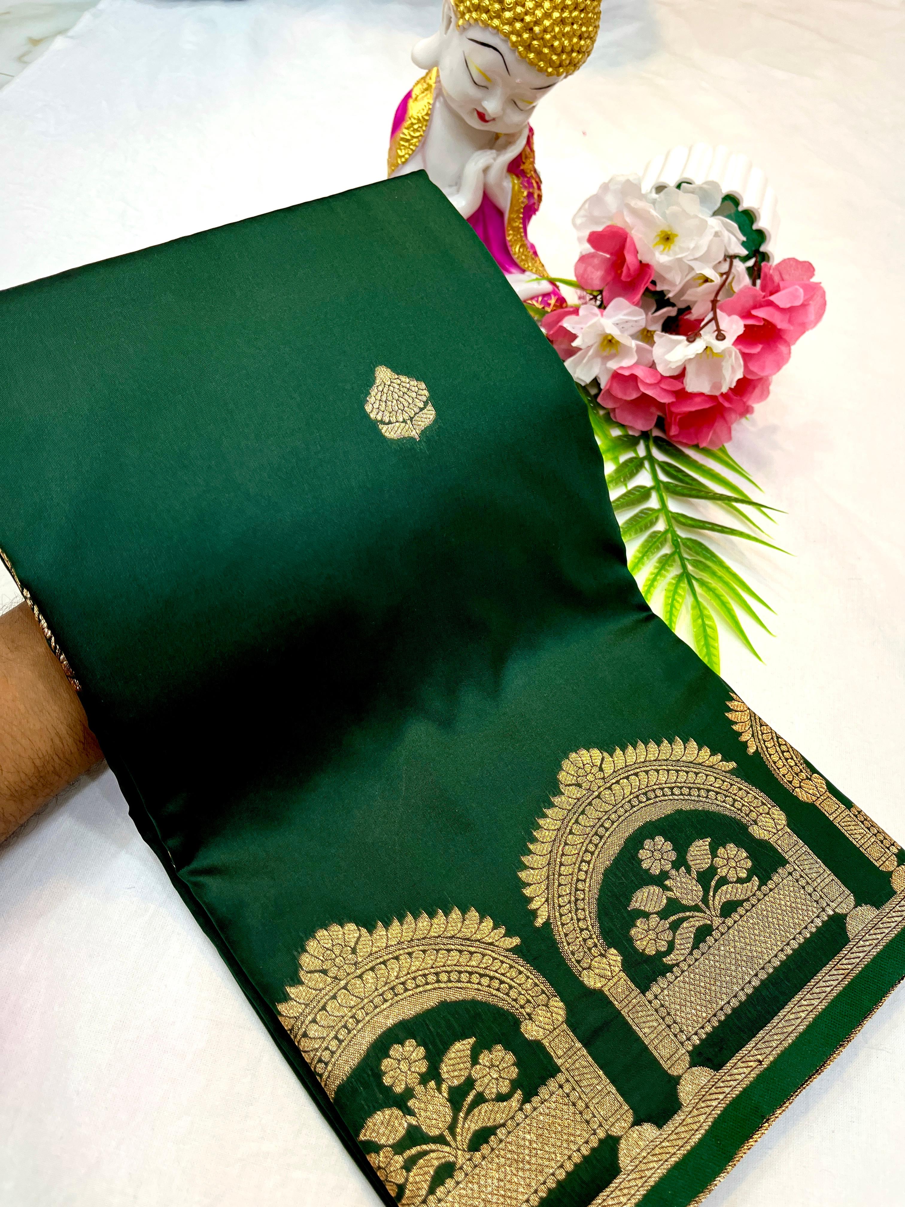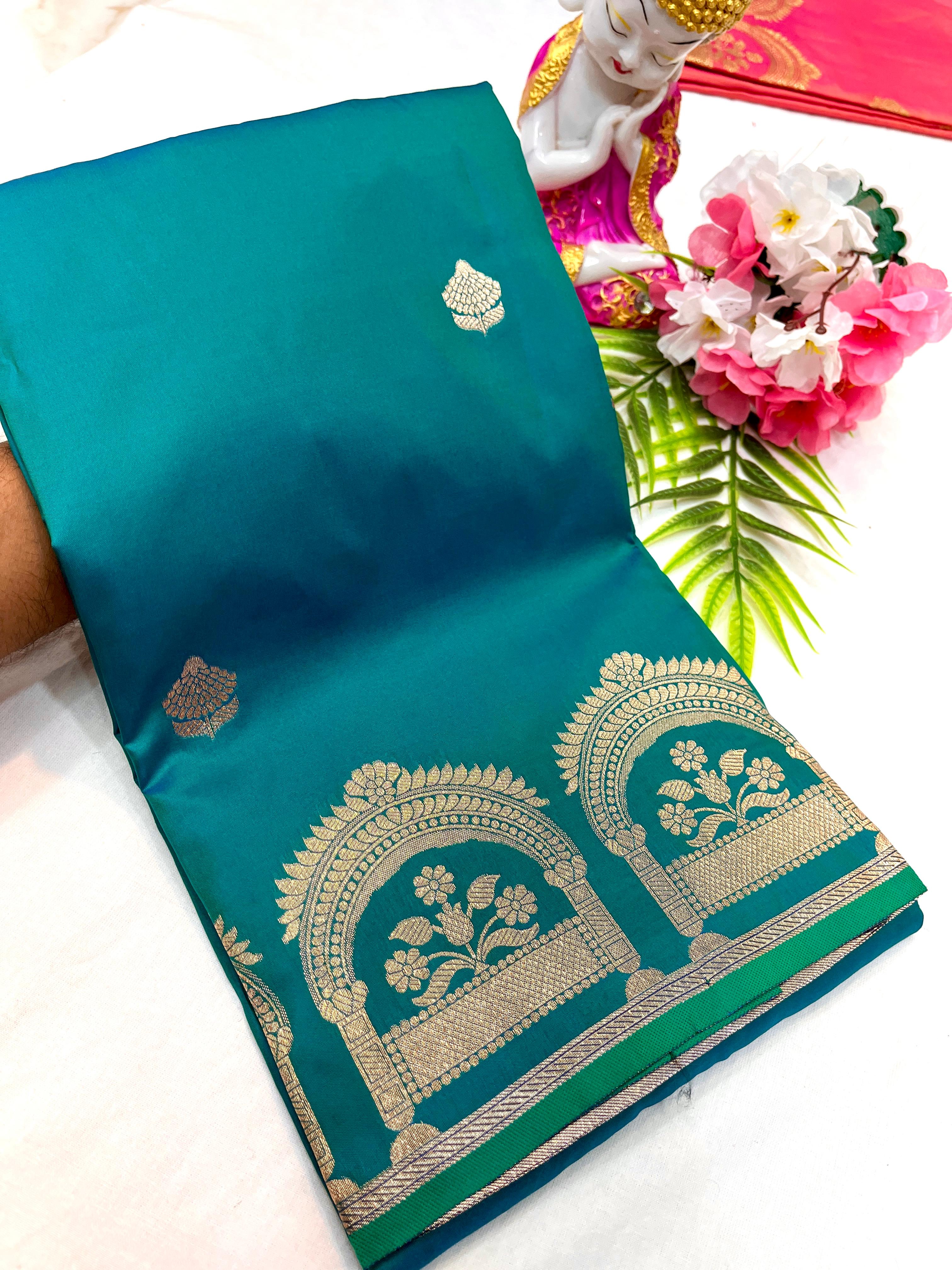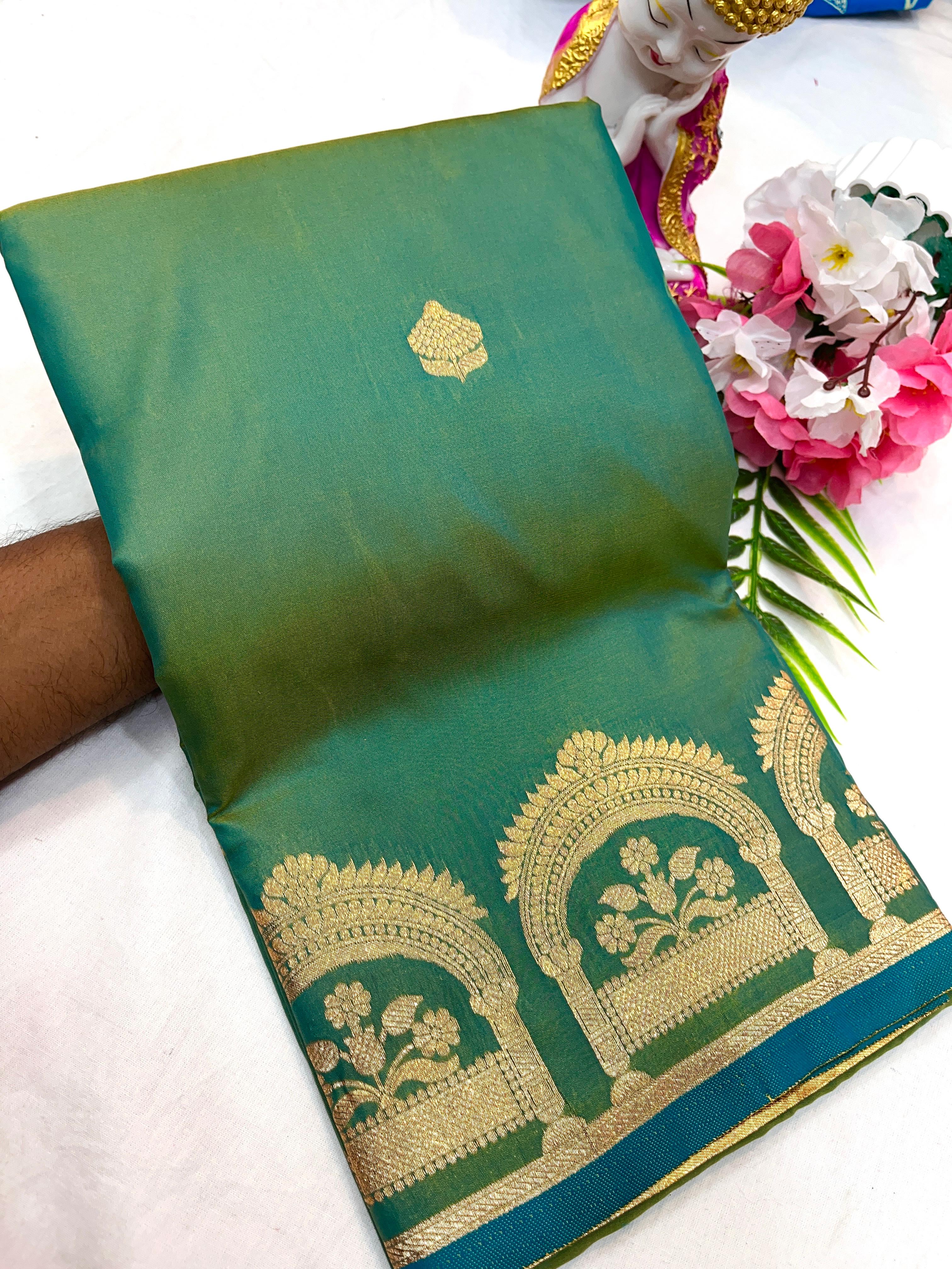 Elegant saree featuring an open border adorned with intricate zari work, combining traditional artistry with a graceful design ideal for special occasions.