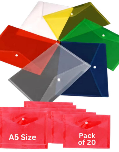 Plastic File Folder for Document Envelope Cover, Home and Office Use - Pack of 20 (Multicolour)