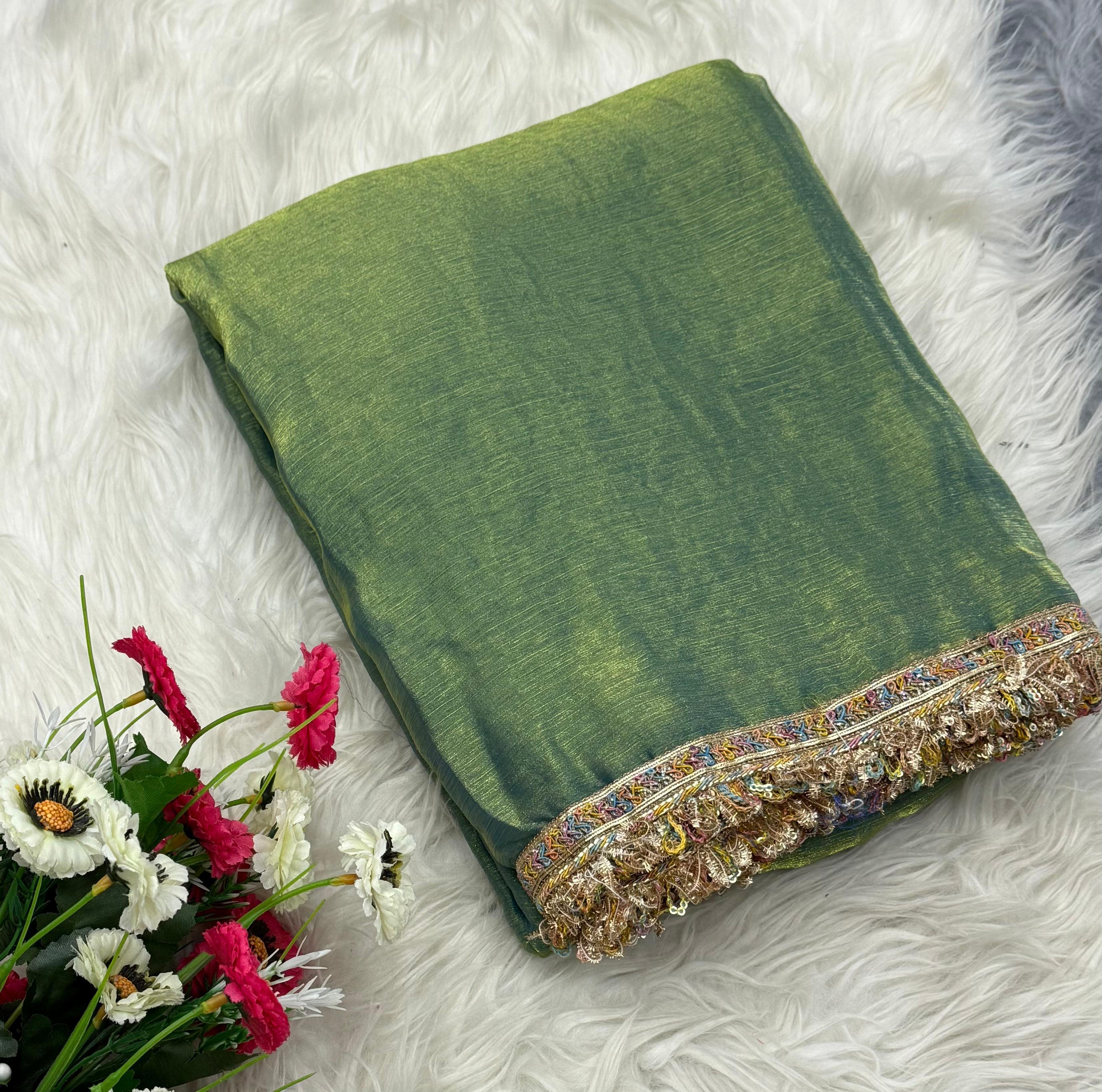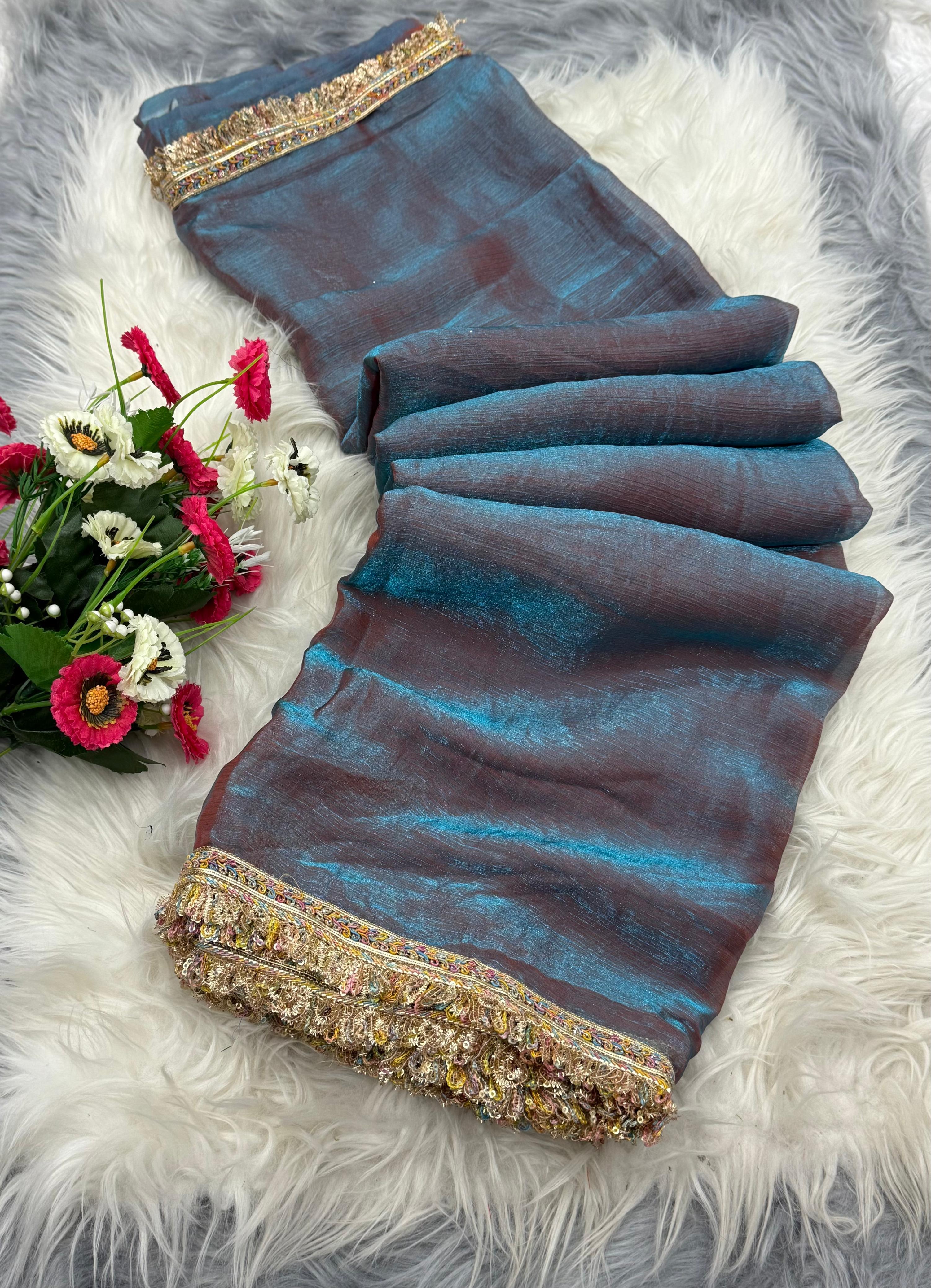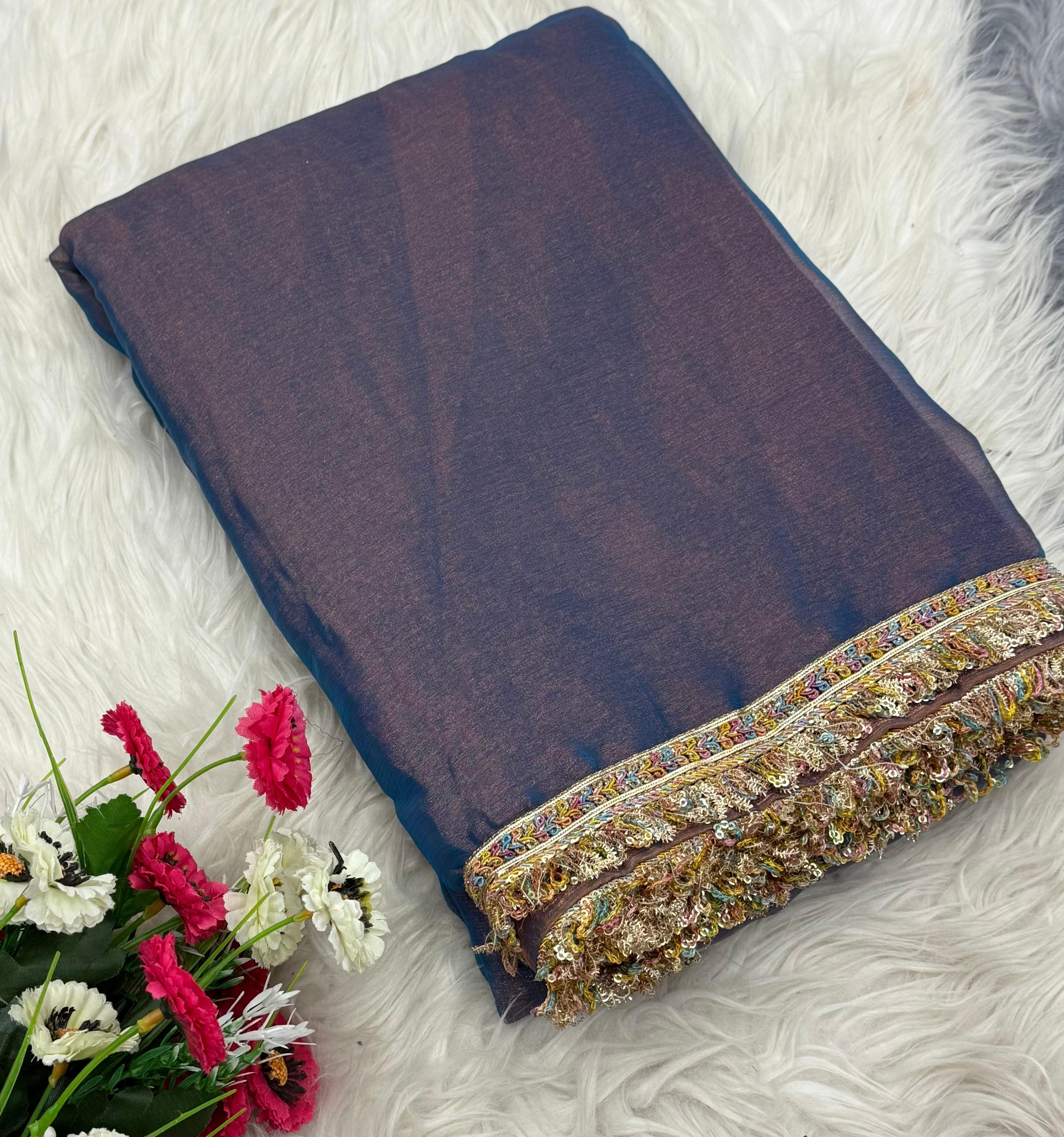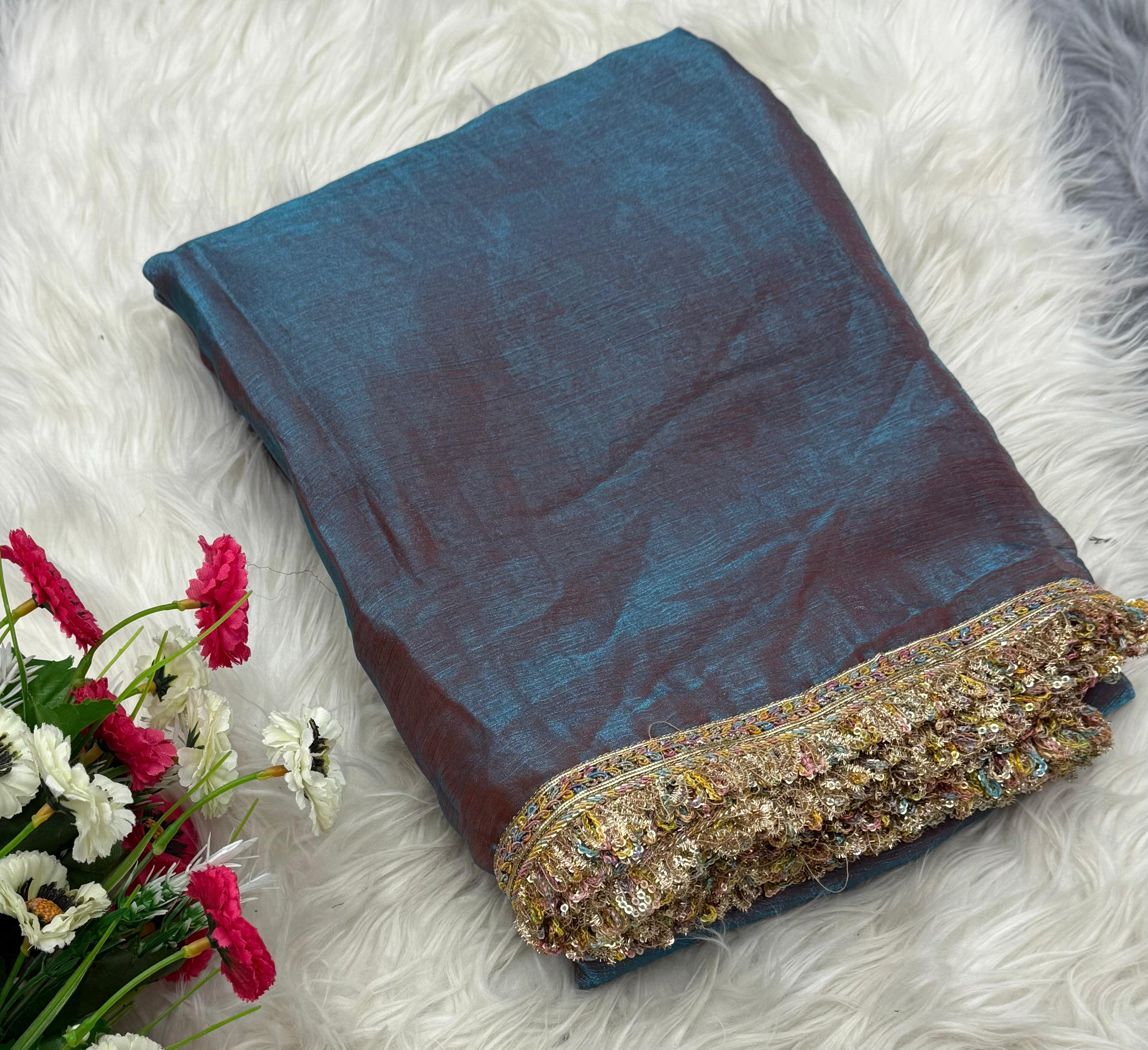 *Fabric- Space silk Saree With Multi Color Sequence Lace Saree With Running Blouse*