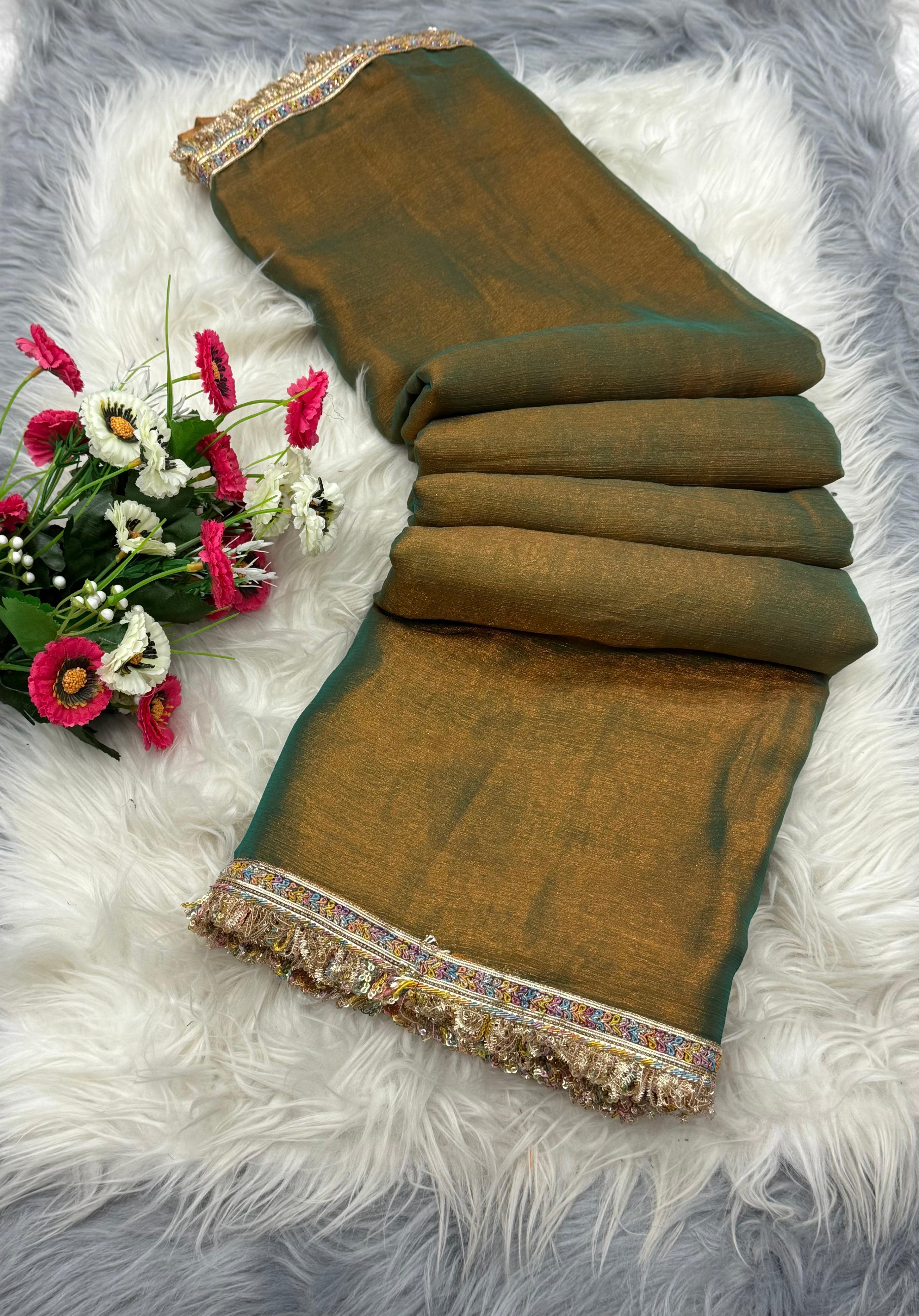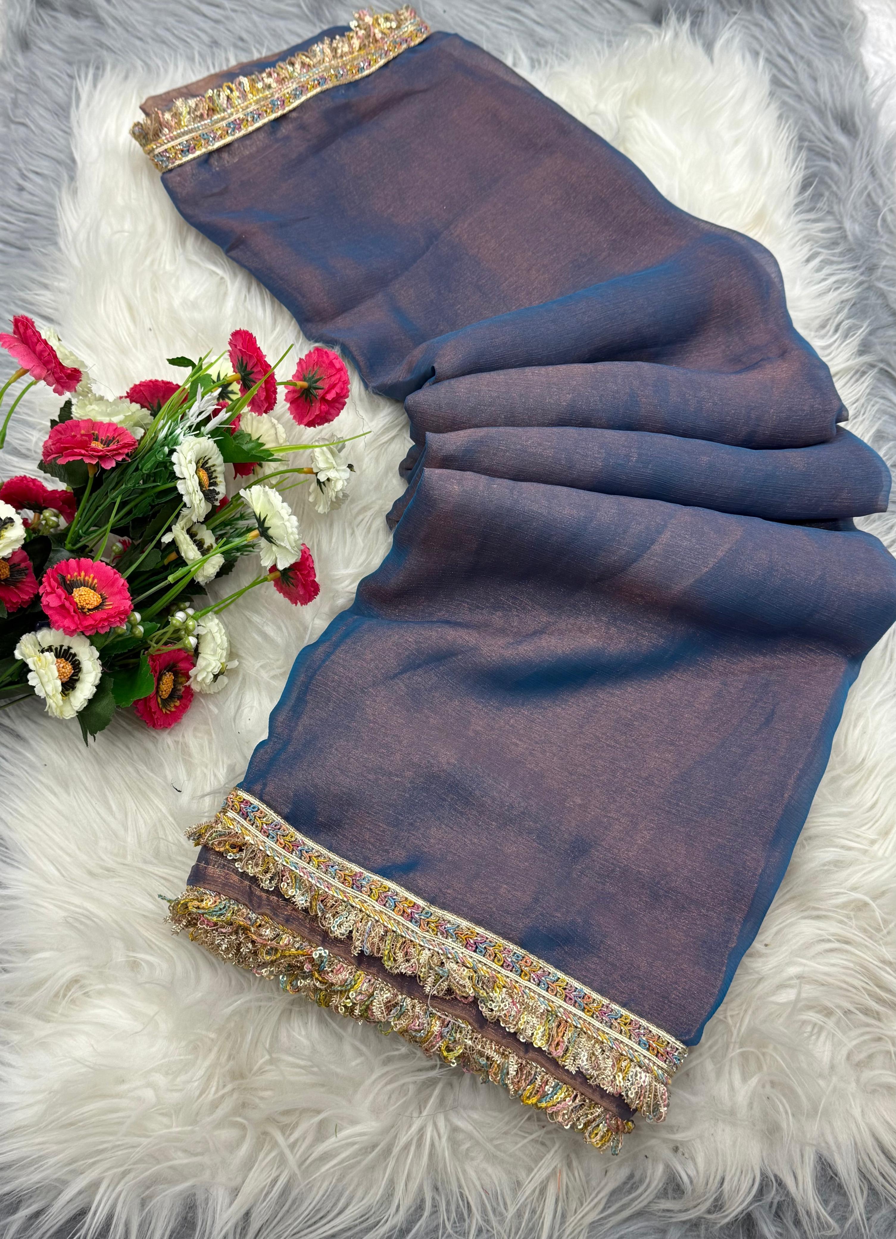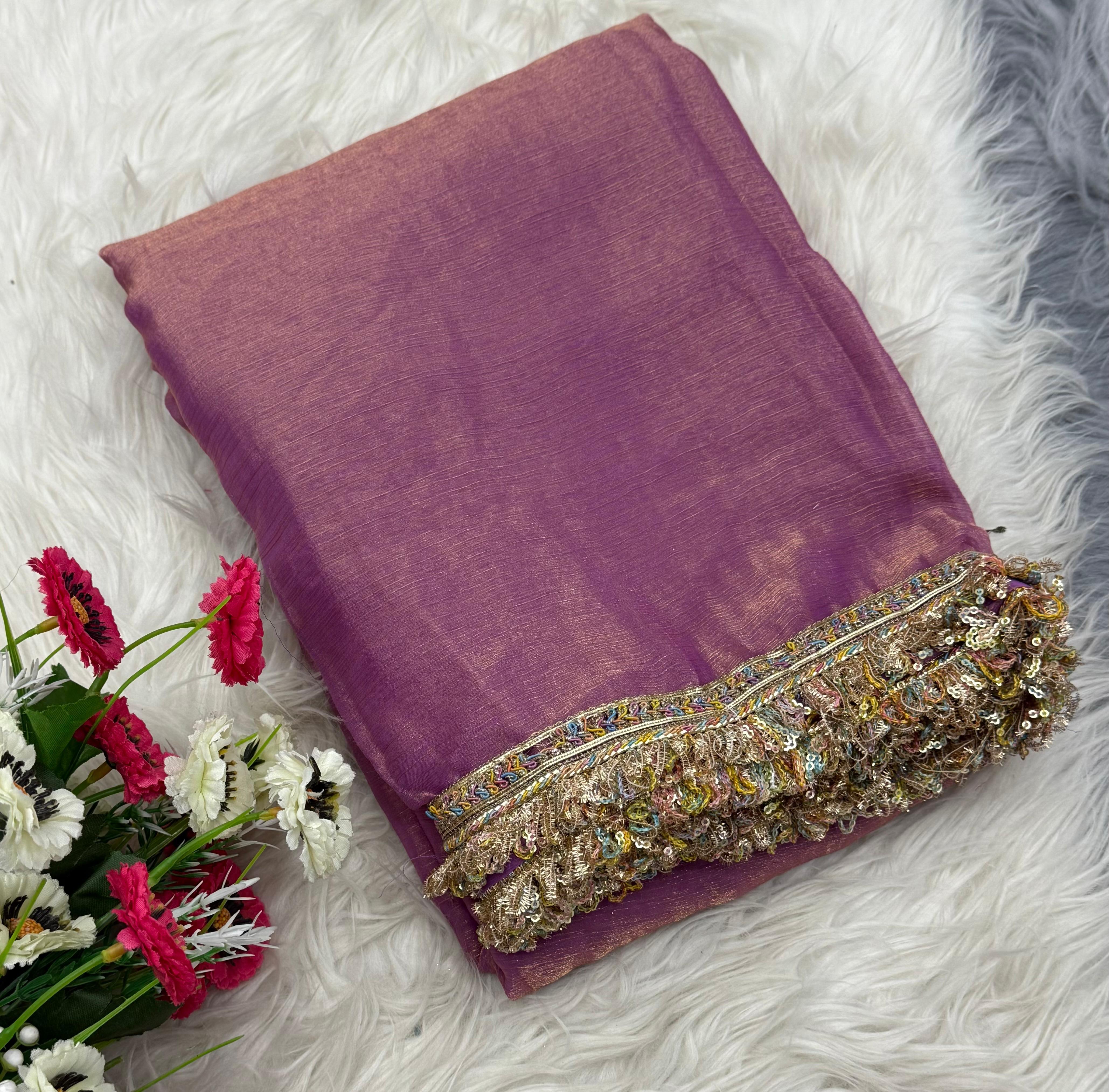 *Fabric- Space silk Saree With Multi Color Sequence Lace Saree With Running Blouse*