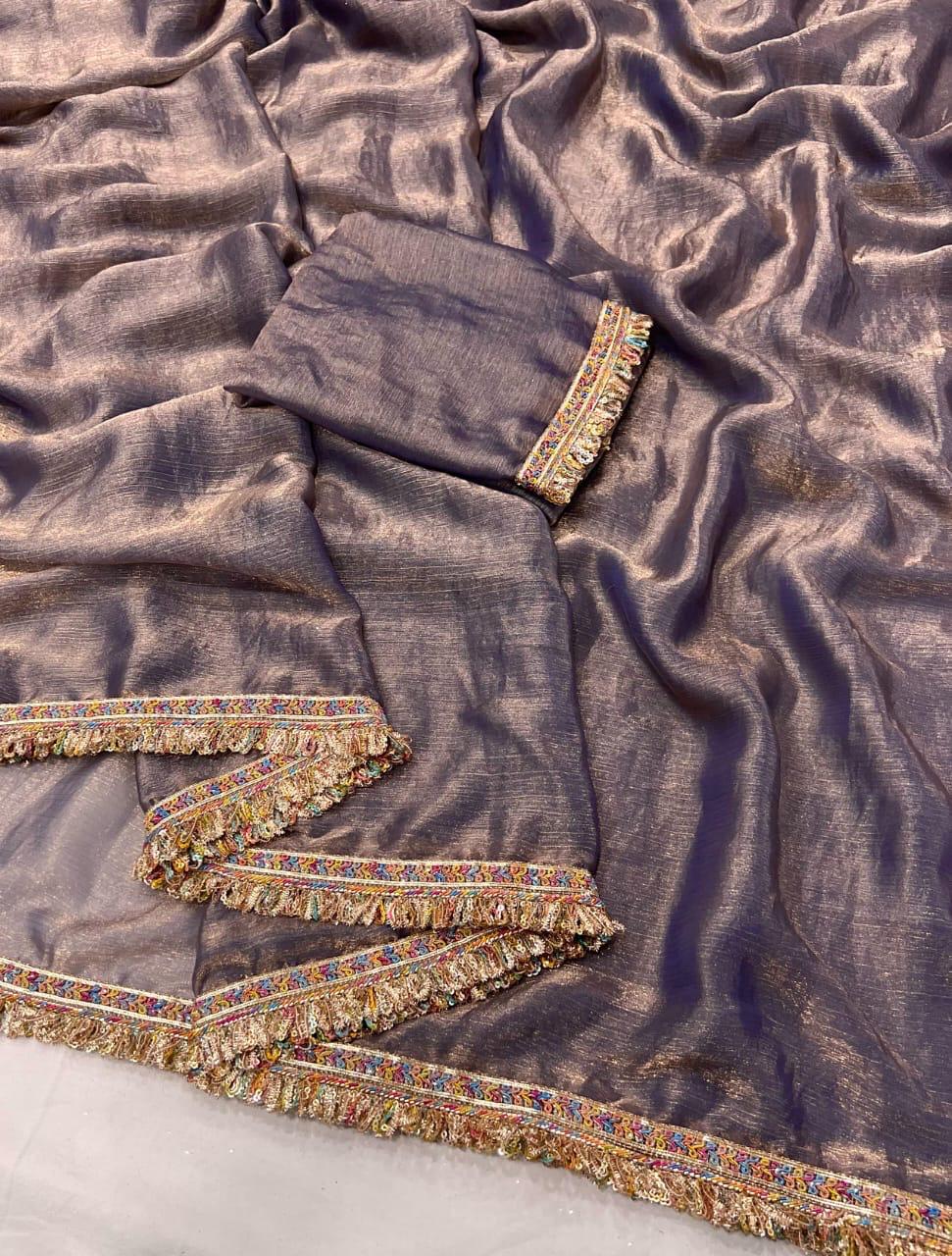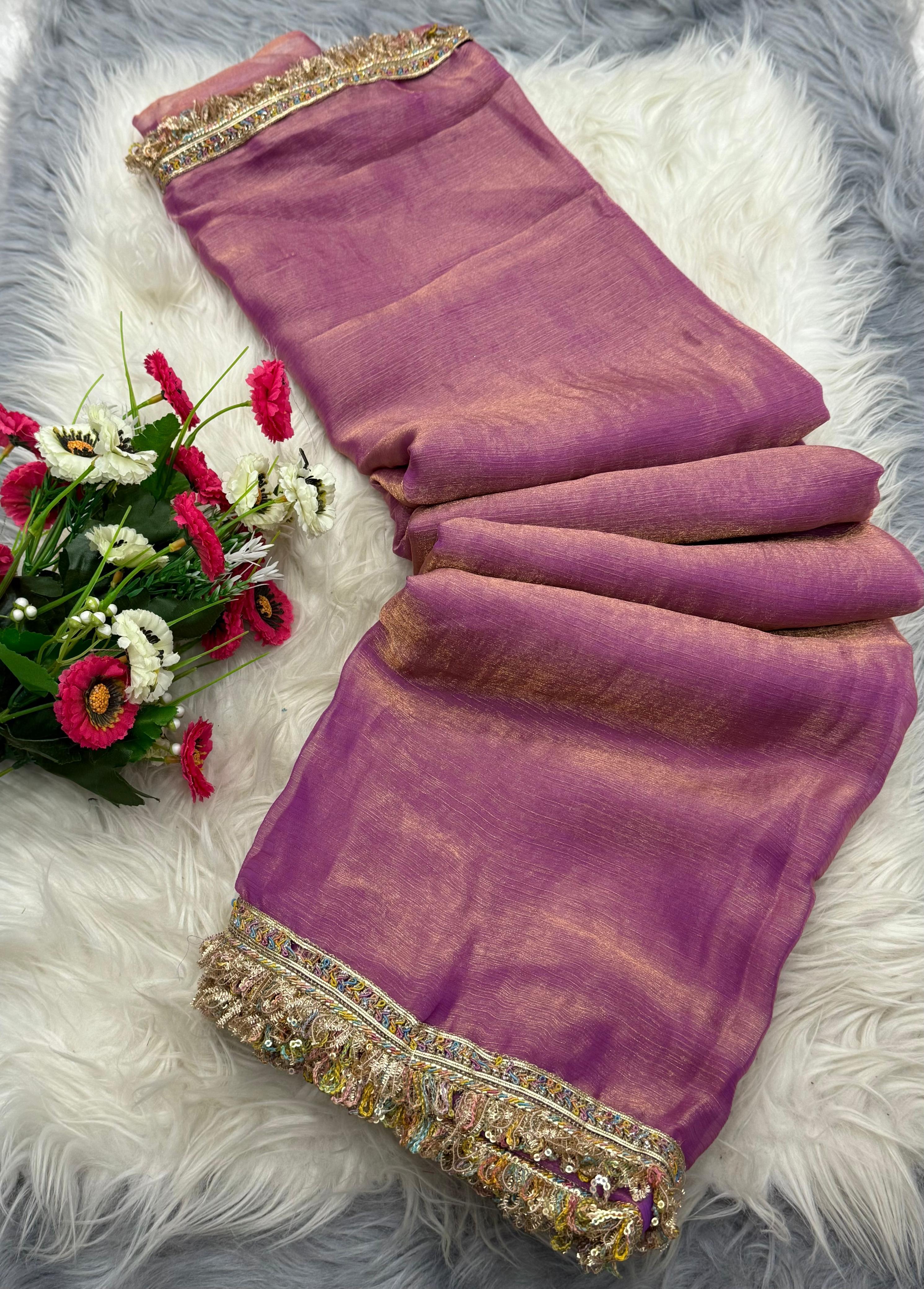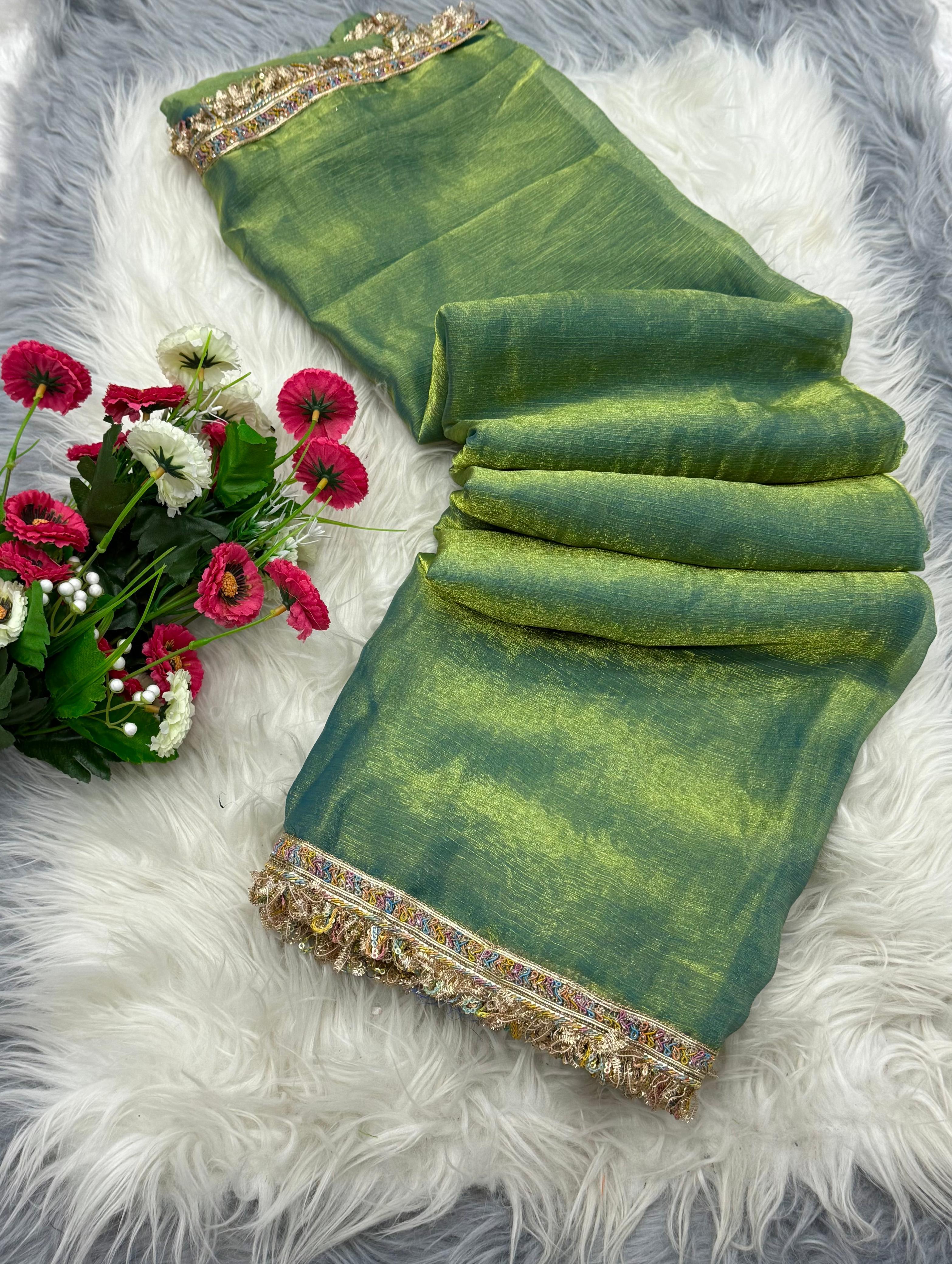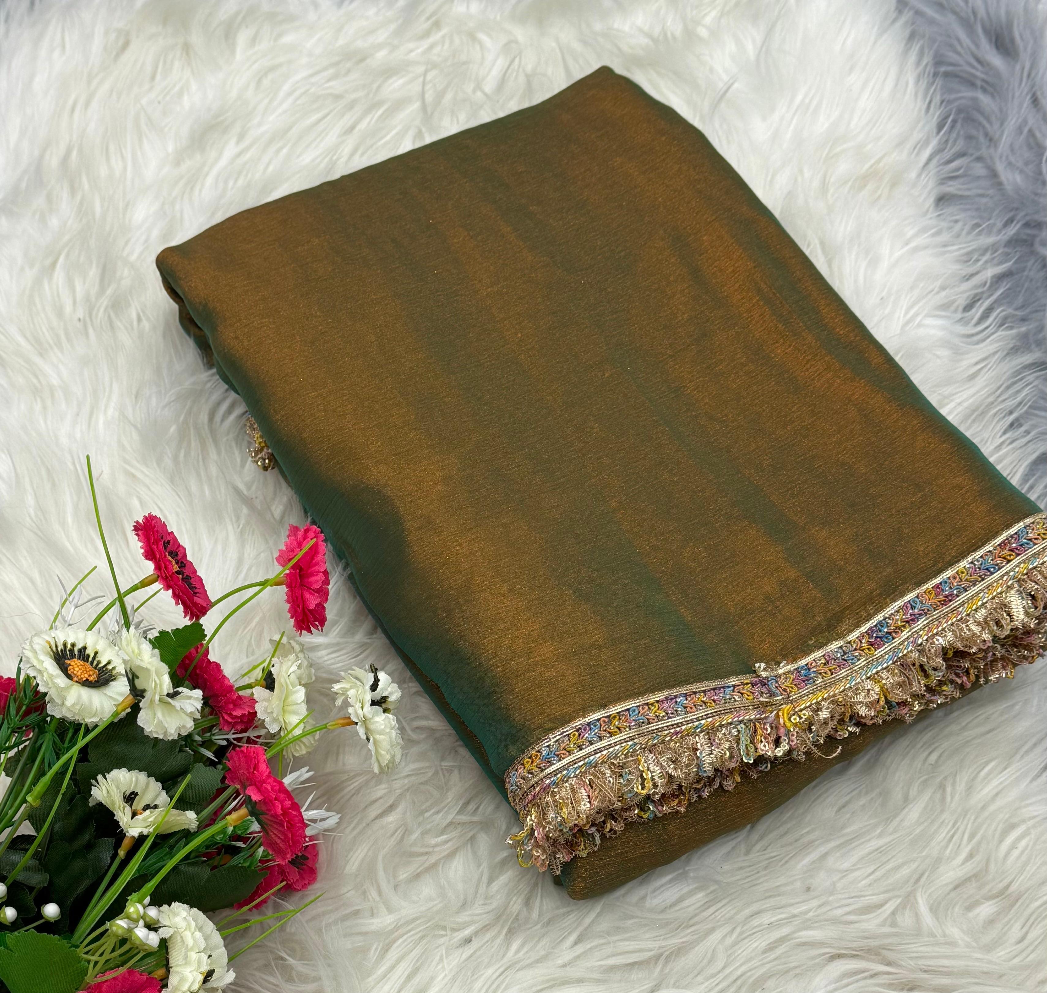 *Fabric- Space silk Saree With Multi Color Sequence Lace Saree With Running Blouse*