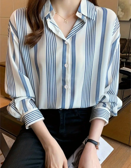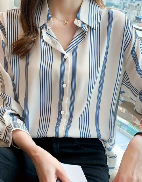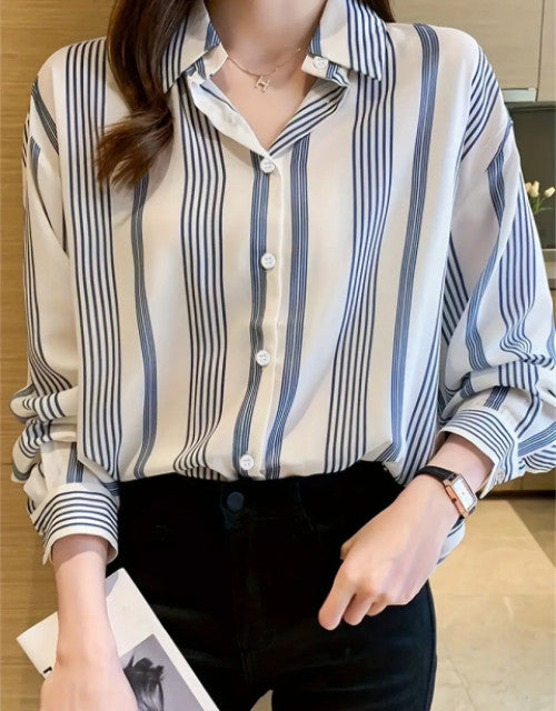 Women Regular Fit Striped Curved Collar Casual Shirt
